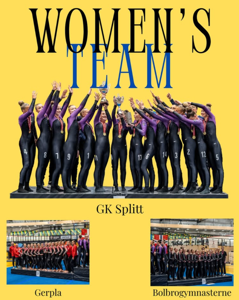 Kvinner: Gull gikk til GK Splitt fra Sverige, som leverte en stabil og teknisk sterk konkurranse gjennom hele mesterskapet. Sølv gikk til Gerpla fra Island, mens bronse ble sikret av Bolbrogymnastarne fra Danmark.