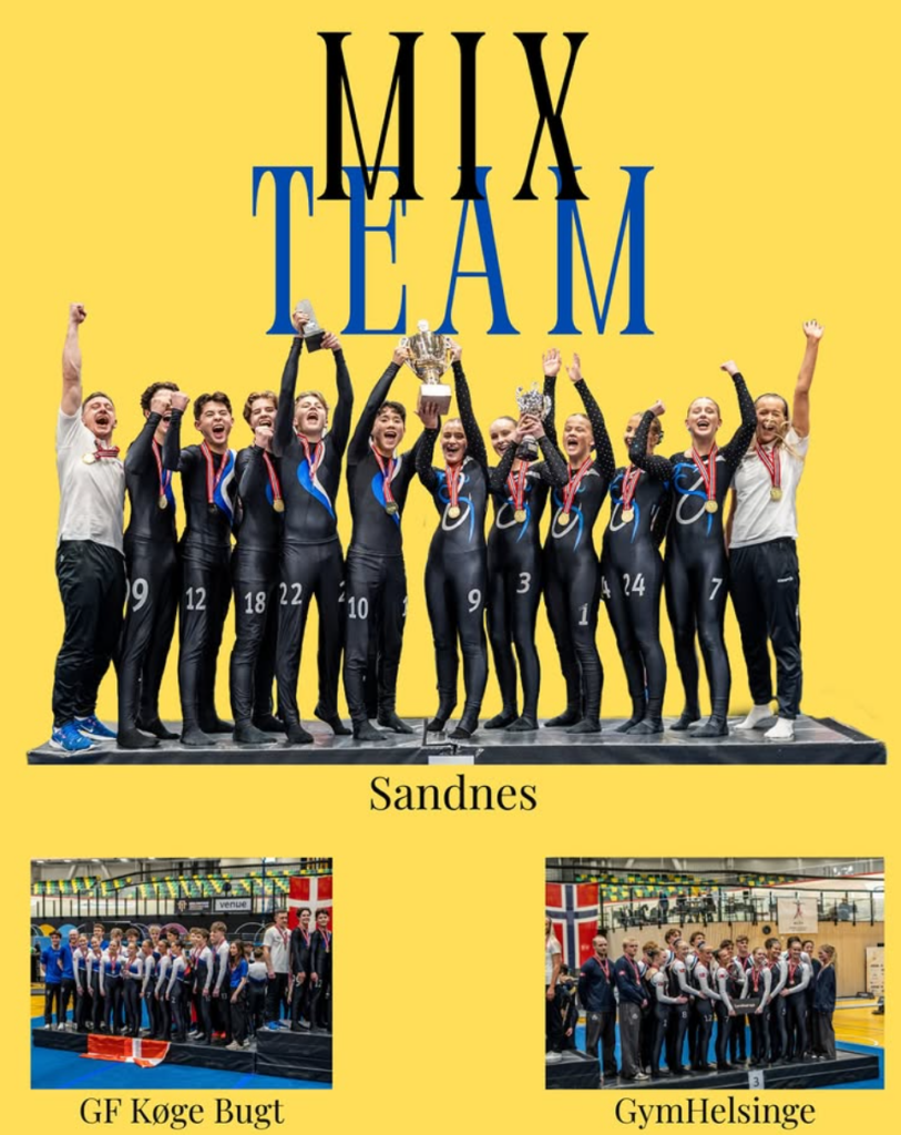 En av dagens store høydepunkter kom i miksklassen, hvor Sandnes Turnforening leverte en imponerende konkurranse og sikret seg gullmedaljen – for første gang i klubbens historie. Prestasjonen ble møtt med stor jubel både fra publikum og lagkamerater, og markerer en milepæl for klubben. Sølv gikk til GF Køge Bugt fra Danmark og bronse tok GymHelsinge også fra Danmark.