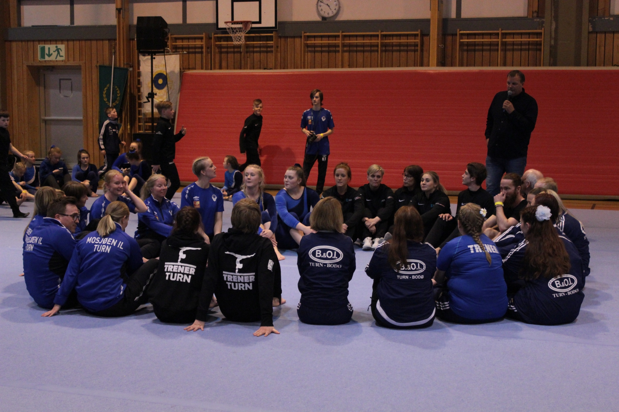 Med på leiren hadde vi 16 engasjerte trenere som hadde kontroll på alle gymnastene i salen, og som gjorde en fantastisk jobb hele uken. En stor takk til Frida Forberg og Stian Sivertsen som hadde ansvaret for det sportslige og som fulgte opp trenerteamet. Lillian Bøe har vært med på leiren siden 2012, og var leirsjef for første gang i år. Hun gjorde en strålende jobb! Hun sikret at alle la seg til leggetid (ingen nåde), og var alltid til stedet og håndterte hva enn som dukket opp.For kretskonsulent Ingvild Vårdal Bredesen var det både gøy og lærerikt å være med og lede leiren- sist hun var med var på turnleiren var som gymnast selv i 1998. To stykker som fortjener en hyllest er de to eminente damene som hjalp til med å lage og servere mat, Gunn Fossum og Berit Andersen! De har vært med i flere år og kretsen er helt avhengig av å ha to ildsjeler som dem for å kunne gjennomføre et slikt arrangement.