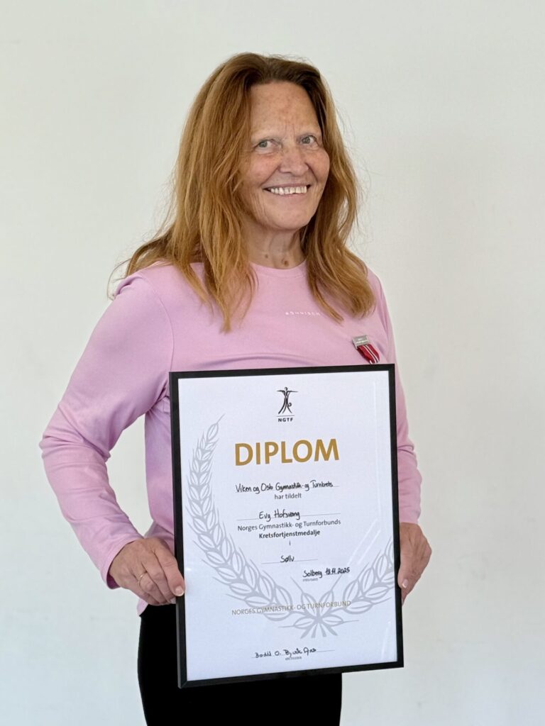 Viken og Oslo Gymnastikk- og Turnkrets gratulerer Evy Hofsvang med en velfortjent utmerkelse.
